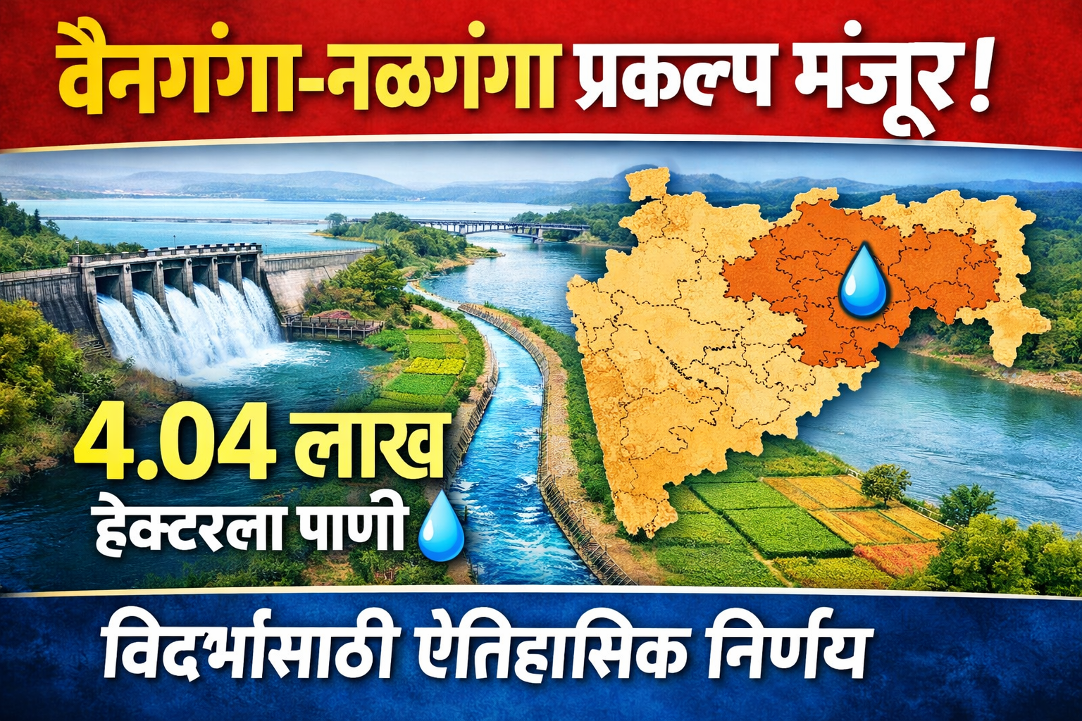 वैनगंगा–नळगंगा नदीजोड प्रकल्पाला मंत्रिमंडळाची मान्यता ८ जिल्ह्यांतील ४.०४ लाख हेक्टर क्षेत्राला सिंचनाचा लाभ