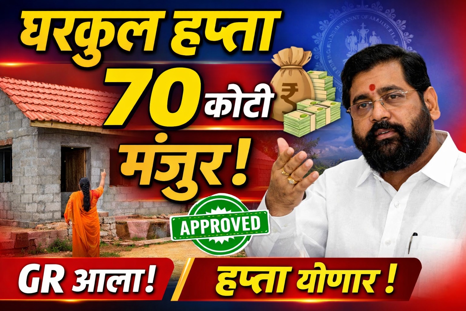 70 कोटी रुपयांचा निधी मंजूर – अडकलेले हप्ते लवकरच खात्यात जमा होणार राज्यातील घरकुल योजनेच्या हप्त्याची प्रतीक्षा करणाऱ्या सर्व लाभार्थ्यांसाठी मोठी आणि दिलासादायक बातमी आहे. महाराष्ट्र राज्य शासन यांनी आज 24 फेब्रुवारी 2026 रोजी एक महत्त्वाचा शासन निर्णय (GR) जारी करत घरकुल योजनेसाठी 70 कोटी रुपयांचा अतिरिक्त निधी मंजूर केला आहे. हा निधी केंद्र पुरस्कृत … Read more