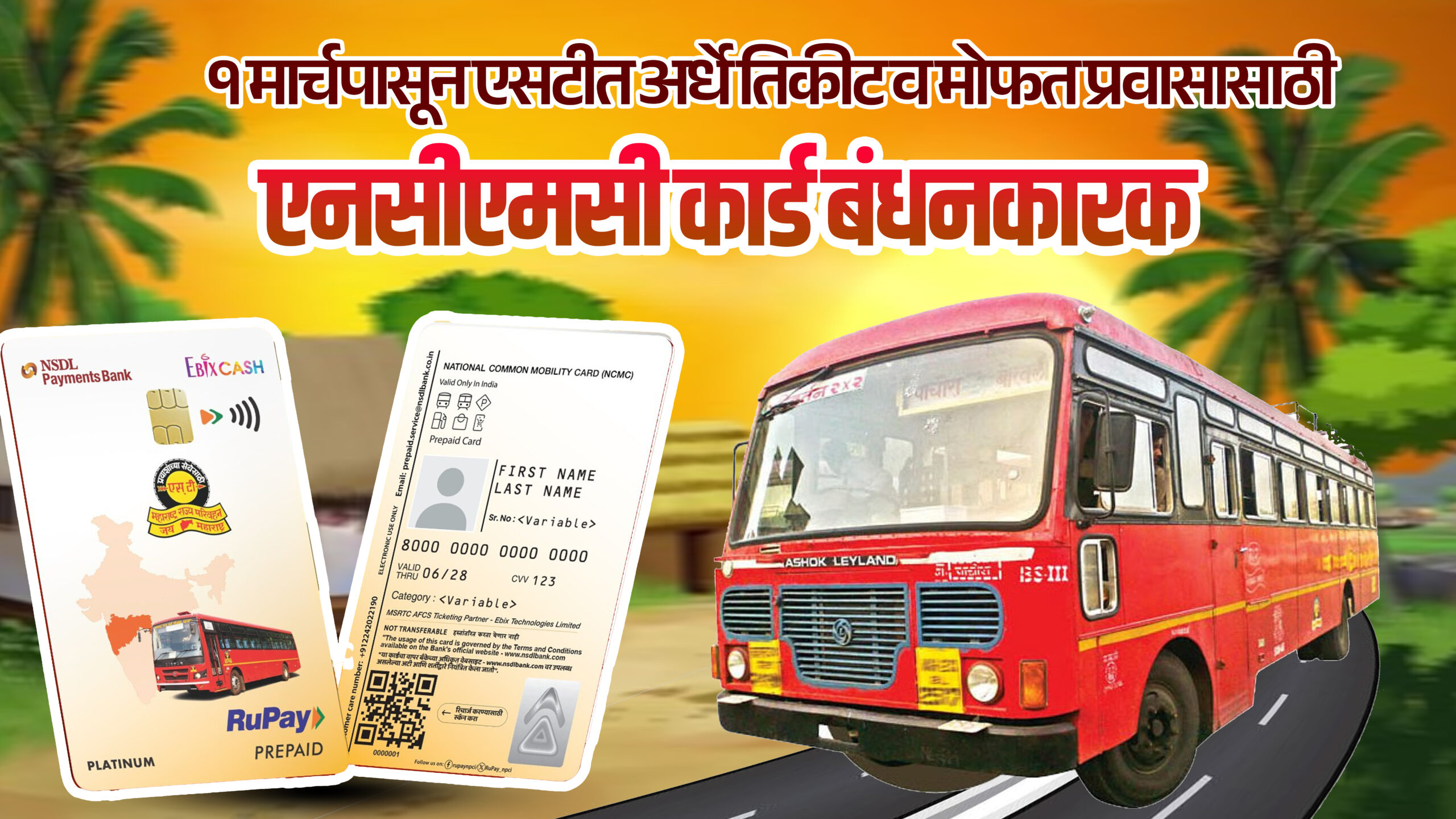१ मार्चपासून एसटीत अर्धे तिकीट व मोफत प्रवासासाठी एनसीएमसी कार्ड बंधनकारक